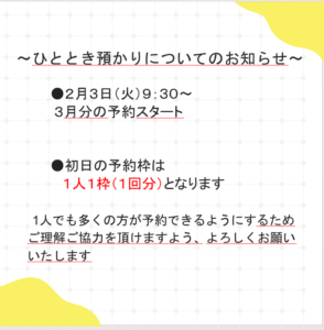 どろっぷ・どろっぷサテライトのひととき預かりは現時点では予約できませんのでご注意ください