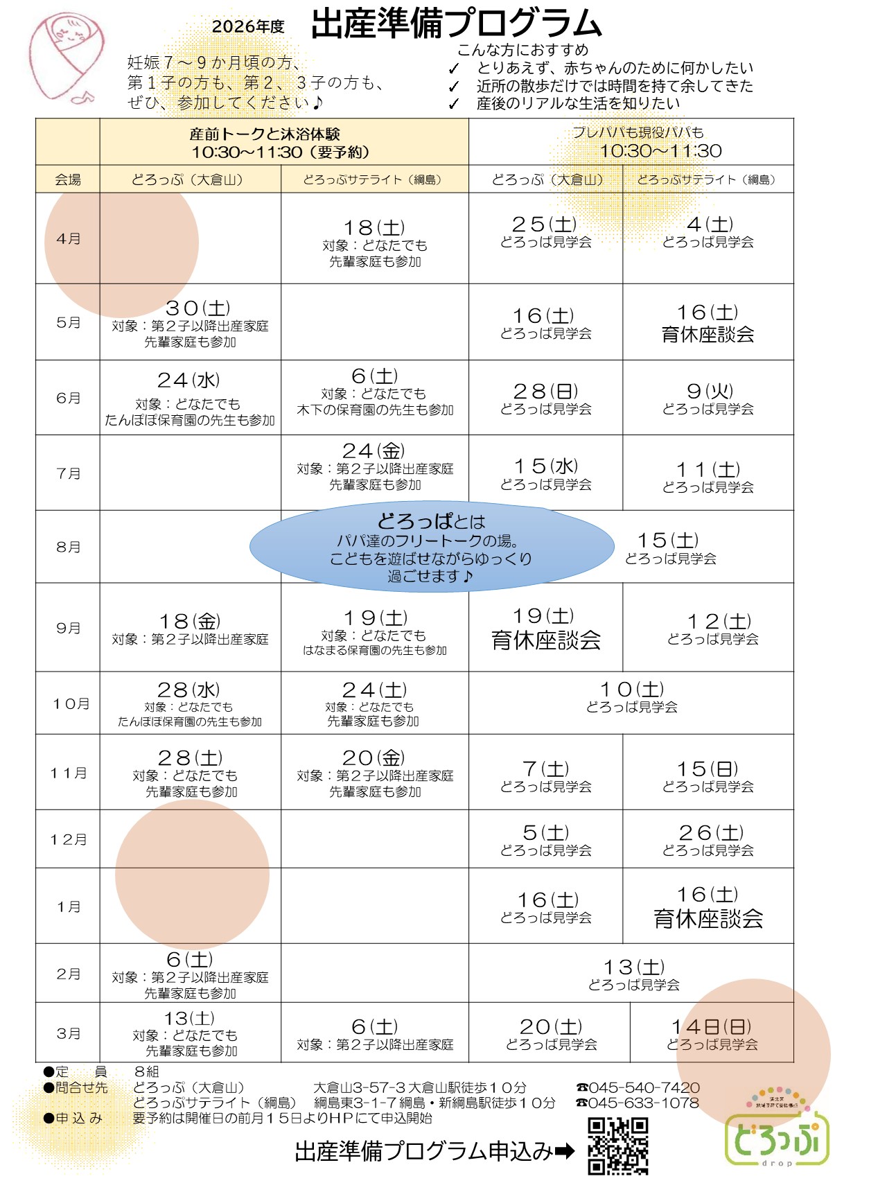◆4/18(土)【どろっぷサテライト(綱島)】出産準備プログラム~産前トークと沐浴体験~