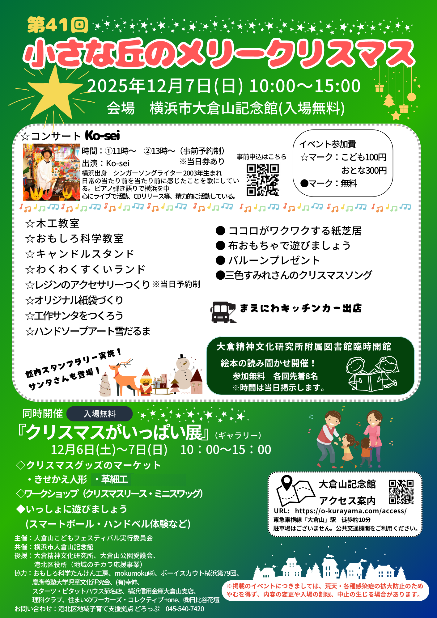 12月7日(日)に「小さな丘のメリークリスマス」を開催します。