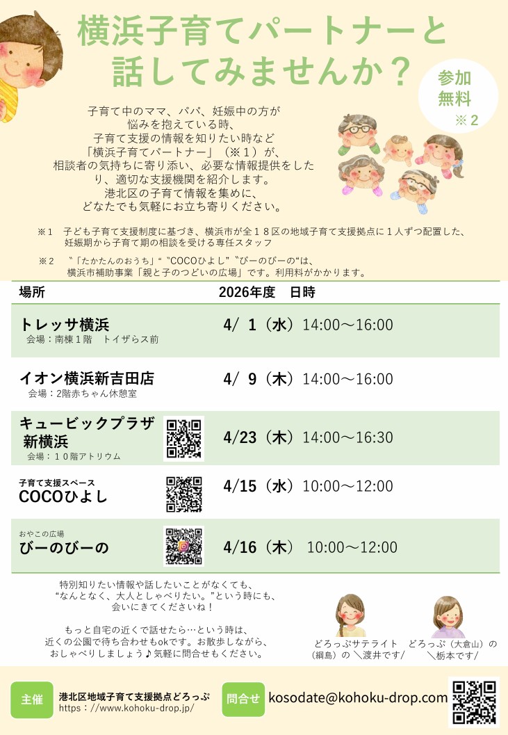 子育て相談会 横浜子育てパートナーと話してみませんか?