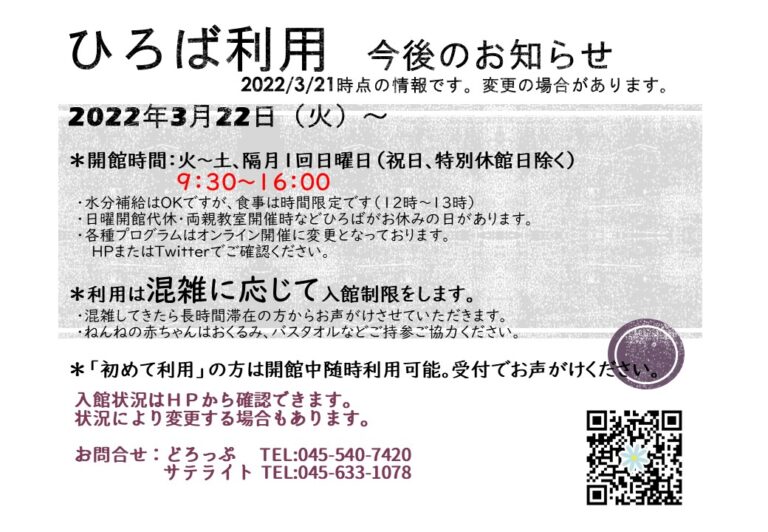 2022年3月22日からのどろっぷ・サテライトひろば利用について